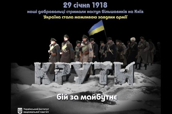 Чотириста молодих військових курсантів і козаків загону «Вільне козацтво», які за 130 кілометрів від Києва, під залізничною станції «Крути», що неподалік Ніжина 29 січня 1918 року протистояли чотиритисячному червоногвардійському загону під проводом есера Михайла Муравйова, який за будь-що мав намір взяти Київ.